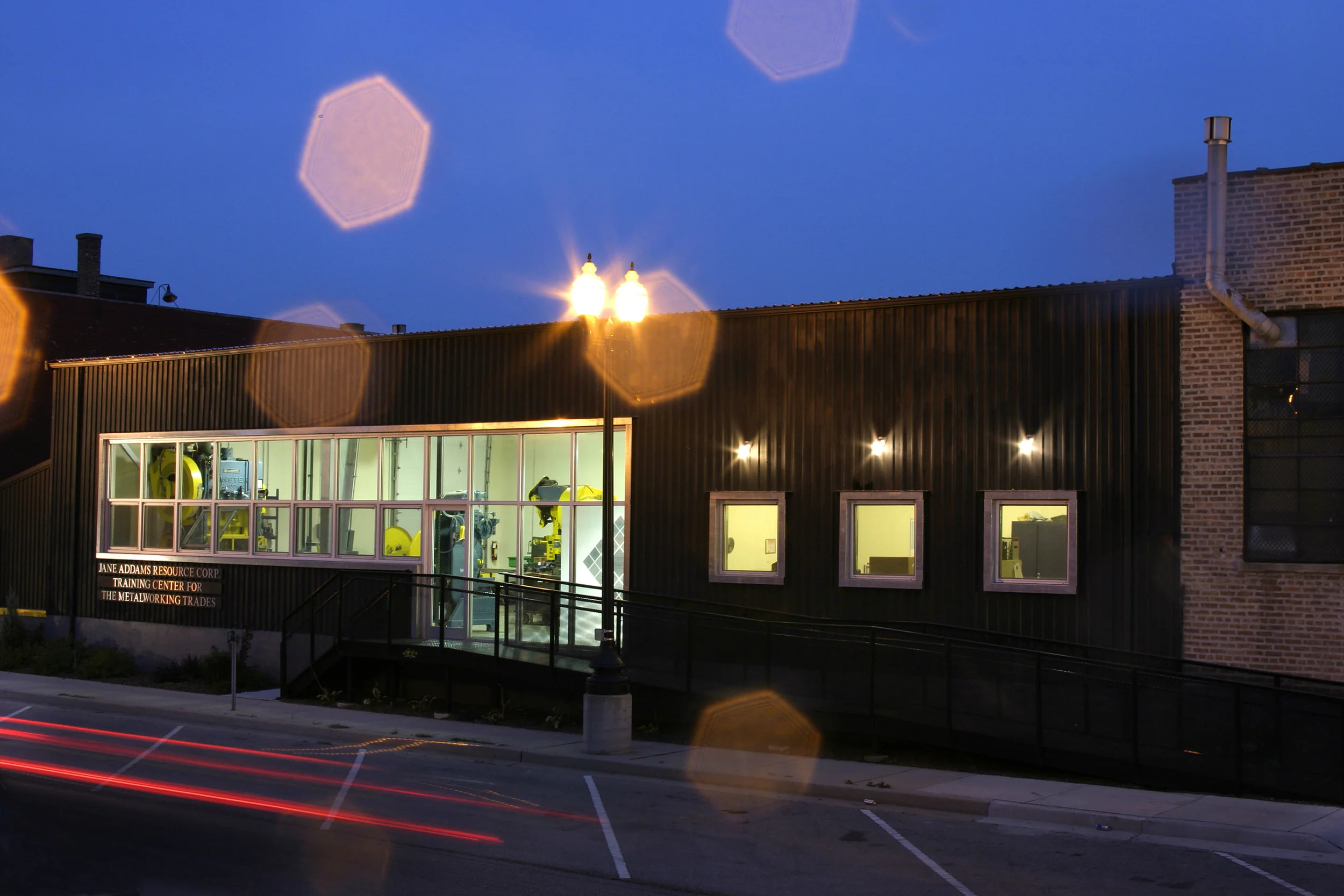 This project was a conversion of an existing crane shed into a new training center for the metal working trades located along the Ravenswood Industrial Corridor on the north side of Chicago