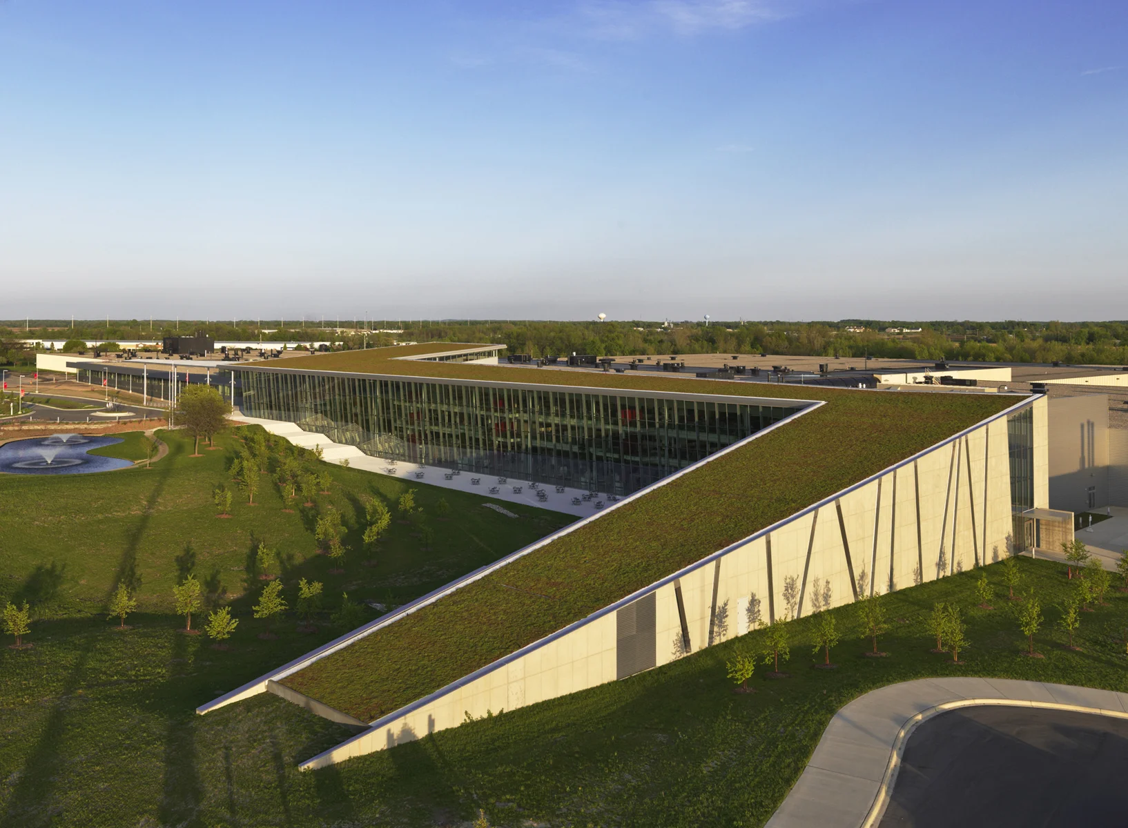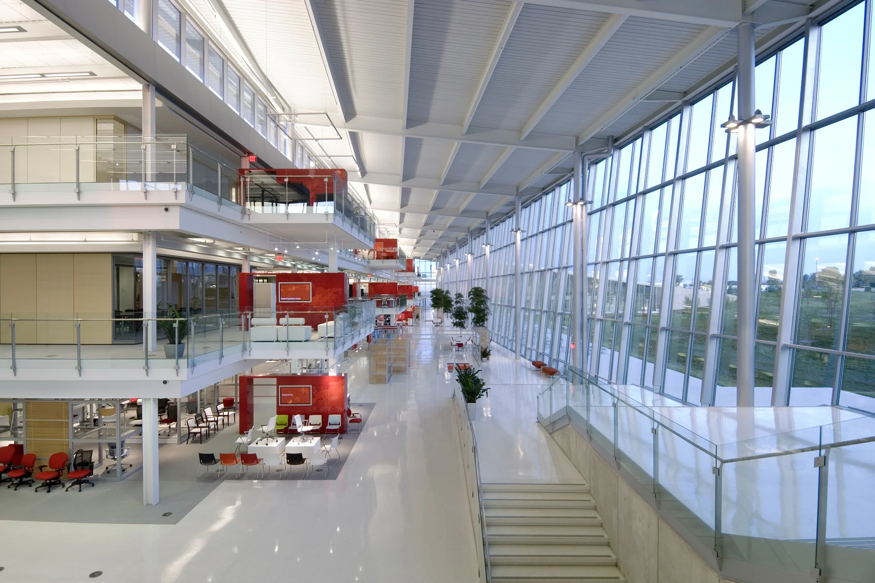 Haworth furniture partnered with Perkins + Will to uncover a new design identity for the company through the design of its showrooms and this 300,000sf gut renovation and addition to their global headquarters.
