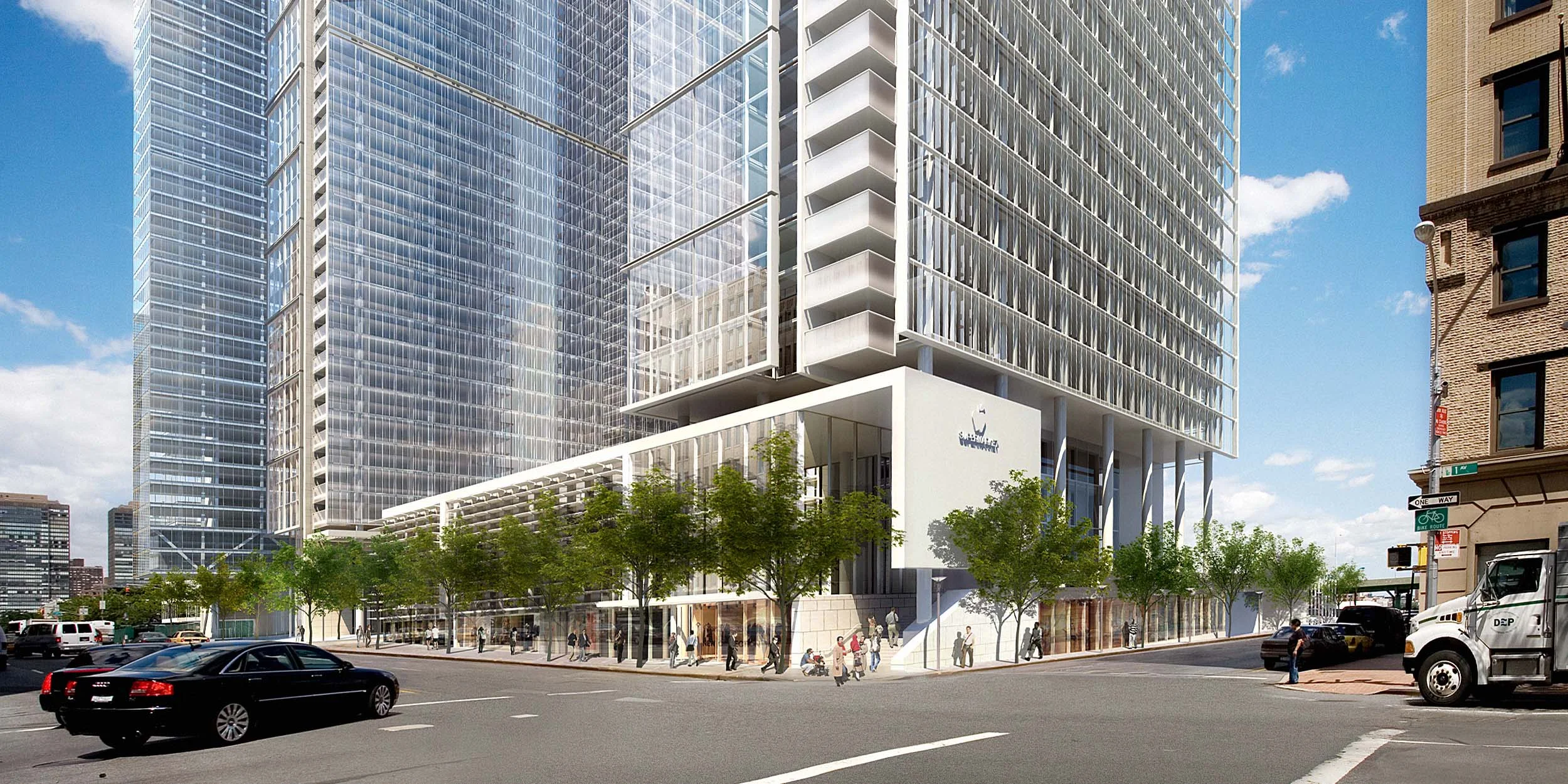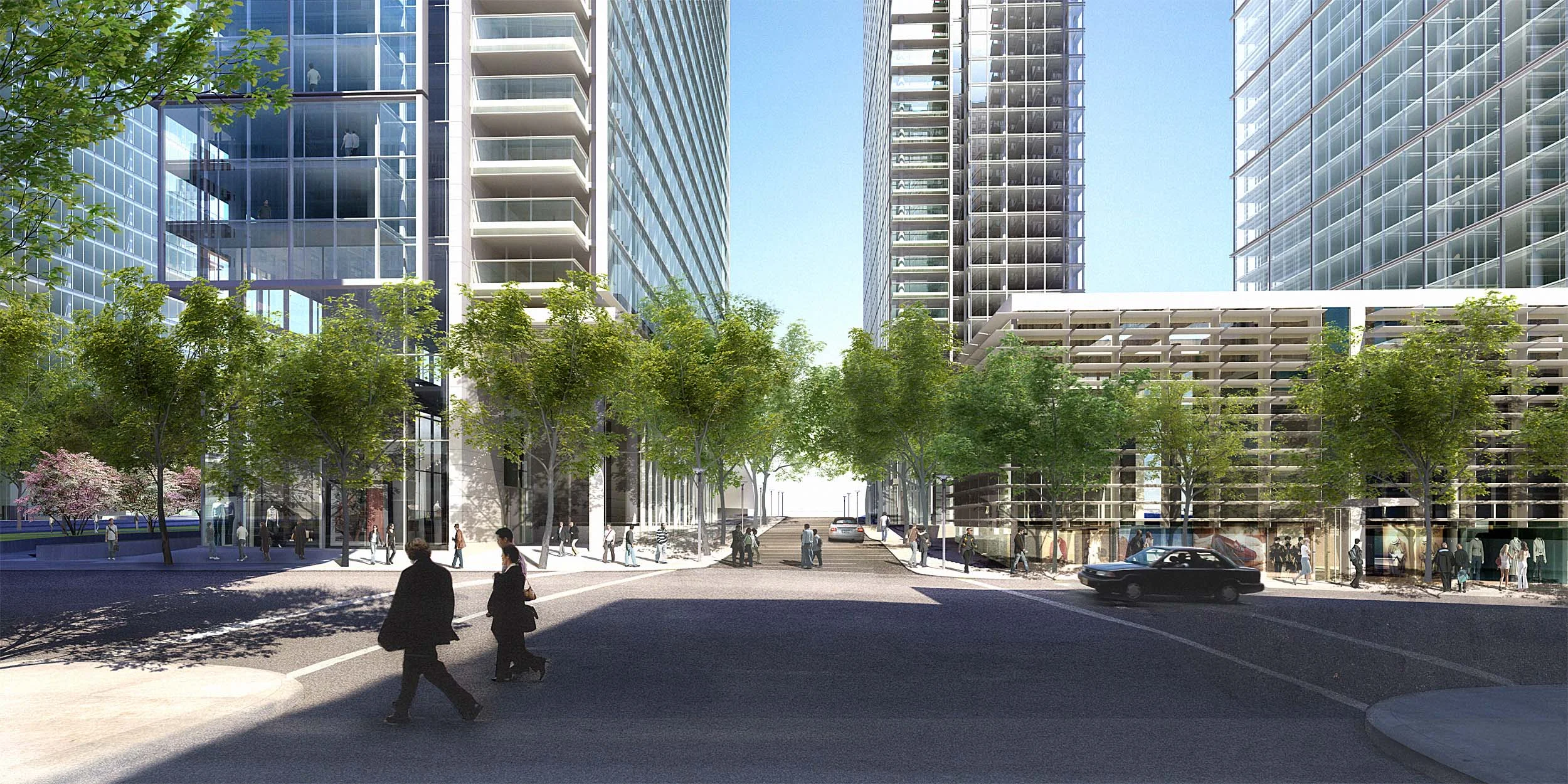 For the buildings fronting on First Avenue, their urbanism was an important consideration - we studied various approaches to breaking the form of the towers at the street level without losing the strength of the form and sense of mass of the tower above.